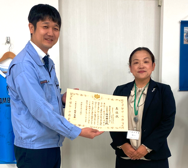 この度、弊社は川島税務署より表敬訪問を受け、優良申告法人として表敬状を拝受いたしました。